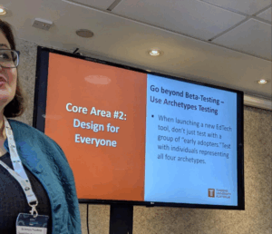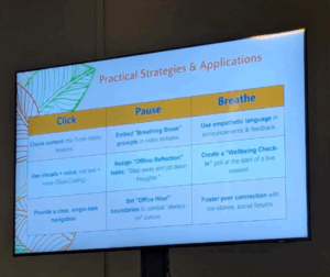 Talks from Zoe Moutsopoulos (Designing for Belonging: Embedding Wellbeing into Digital Learning), Sundus Baig (Click, Pause, Breathe: Embedding Wellbeing in Online Learning Design), and Gabi Witthaus (Engaging Learning: Rethinking Inclusion with Insights from the Margins) focused on how fostering a sense of belonging isn’t just a “nice to have,” but a crucial way to help all students stay, attain, and succeed.